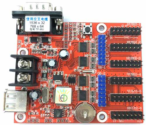 | 板载接口 | 2个08接口; 6个12接口 无需转接板即可支持各种常见的P10、3.75、5.0模组 |