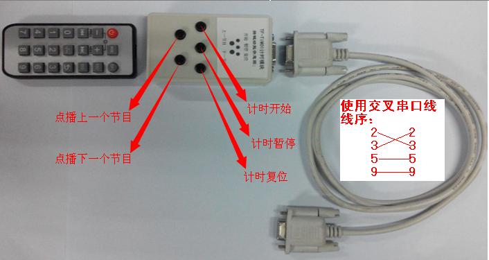 4,遥控模块本身自带按键,可控制序号为1的计时区的计时开始、暂停、复位;同时可点播上一个节目和下一个节目(功能等同TF-RMT的点播功能)。